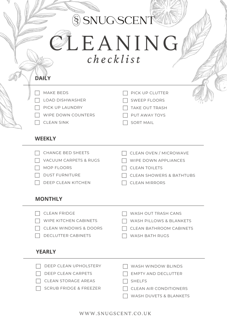 You may also want to create a spring cleaning checklist to track tasks and stay organised. Download a simple, but useful cleaning checklist here.